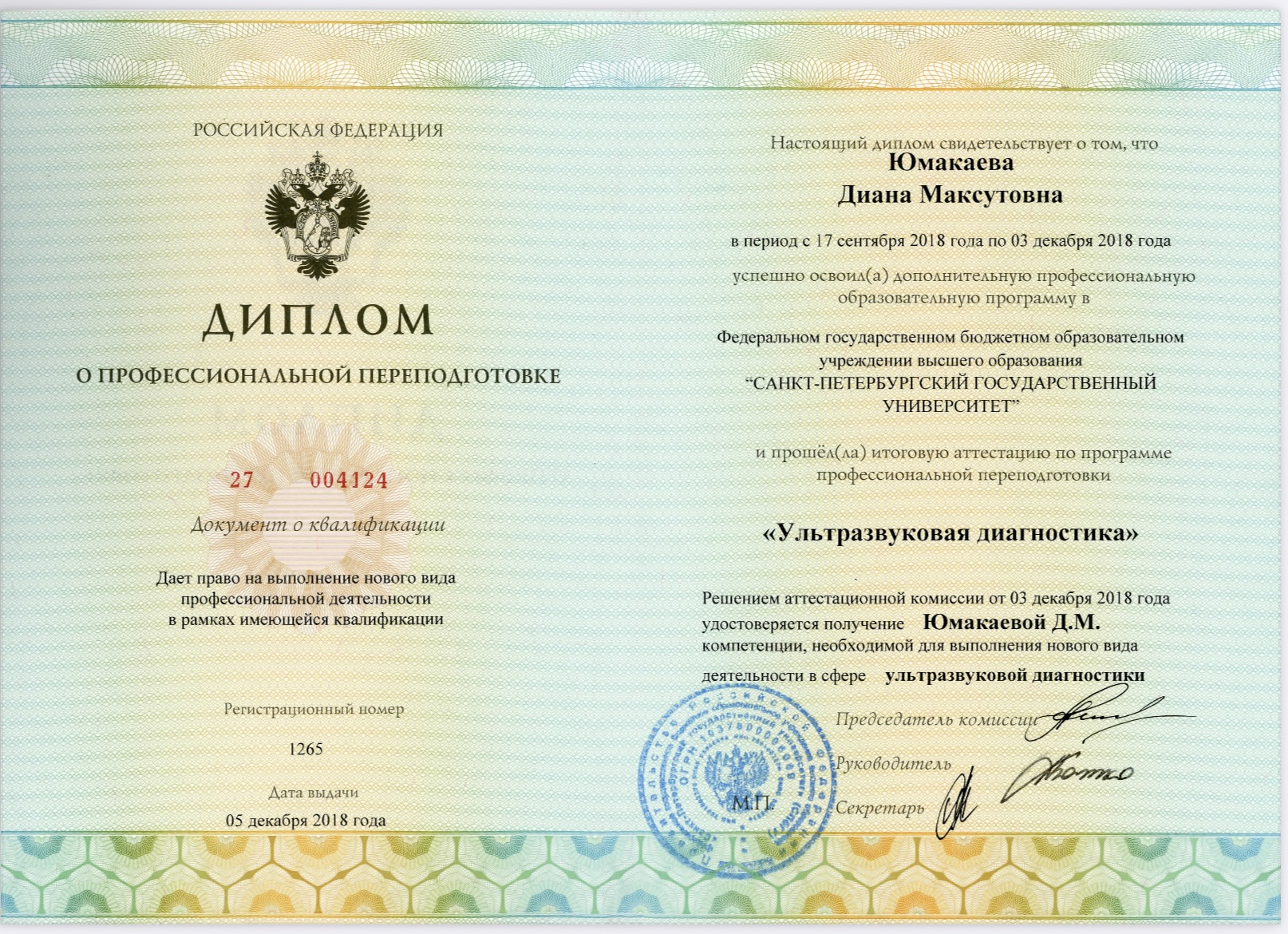 2018 г., Санкт-Петербургский государственный университет, Ультразвуковая диагностика;
